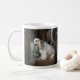 A beautiful white with brown spots Cocker Spaniel photographed in a rustic setting. For all the breed's lovers this will make a wonderful gift for any occasion.