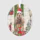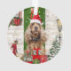 Cocker Spaniel Dog sitting outside decorated home with Christmas wreath, Christmas tree is a perfect Christmas gift idea for dog lovers.