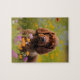 This puzzle features a cute cocker spaniel in a field of wildflowers.