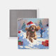 Cocker Spaniel Running in Snow with Christmas Hat Magnet