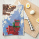 Cocker Spaniel Running in Snow with Christmas Hat Tea Towel