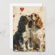 "Celebrate love with our adorable Valentine's Day card featuring two sweet Cocker Spaniels cuddling amidst a backdrop of hearts. This heartwarming illustration captures the essence of affectionate companionship, making it the perfect card to express your love. Share the joy of togetherness with this charming greeting that speaks volumes without saying a word. Because sometimes, a picture of cuddling Cocker Spaniels says it all. Happy Valentine's Day!"