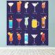 Flat cocktail drinks in glasses, martini, mojito, cosmopolitan and smoothie Alcoholic tropical beverage for bar menu Cocktails set Pro