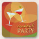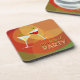 Custom cork coasters set for a cocktail party, pubs, bars or clubs with vector illustration of two cocktail glasses and custom text on colourful background. You can personalise these party coasters with your own text!