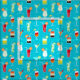 Cocktail Pattern on Teal Background Fabric