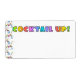 COCKTAIL UP! A bar full of the various cocktail glasses filled with a party full of drinks in a rainbow of colours in a whimsical and colourful style.