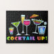 COCKTAIL UP! A bar full of the various cocktail glasses filled with a party full of drinks in a rainbow of colours in a whimsical and colourful style. 3 Variations of the design give you a multitude different gift choices.