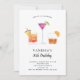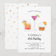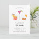 Whimsical adult birthday party invitation card featuring illustration of colourful cocktails.