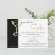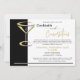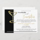 Elegant dinner party / happy hour invite features a black, gold, and white colour format with easy to update text and a cool design featuring a martini glass.