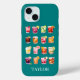 This case is so fun! It has 16 different types of cocktails/mixed drinks in watercolor on a teal background and your name in a modern CAP font in white. You gotta get it!!!
