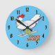The clock did not take as long to arrive as I thought it might and was extremely well packaged. I didn't do the measurements so I didn't realize it is a little smaller than the average clock but that does not matter (just make sure you check if that's important to you).It is really nifty! It seems very solid and well made not flimsy at all. It has been going well and has kept good time in its few weeks on my wall. Nice product. Gets noticed too! Nicer in real life than the picture but true to the picture