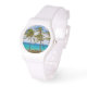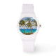 Coconut palm trees (Cocos nucifera) swaying in Watch
