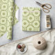 Cute abstract design, adding a touch of vintage vibe, being the best option if you appreciate the beauty of retro shapes and lines! It's colors are mild yellow, green, both pastel, and it features an abstract repeat pattern.
