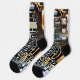 Unique socks with electronic circuitry pattern.