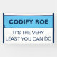 Codify Roe It's the Very Least You Can Do.Codifying Roe should be the floor of women's healthcare rights, not the ceiling. And now, even that doesn't exist. Tell Congress it's time that they do the very least they can do for women's health, safety, and equality, because women are people, and abortion, whatever the reason, is healthcare. Design description: The design space is a white background with a dark blue border. In the top half of the design space, the words, "Codify Roe" in a dark blue sans serif font. Underneath that, a wide light blue stripe with matching dark blue top and bottom borders. Below the stripe, in the bottom half of the design, the words, "It's the very least you can do" across two lines.
