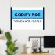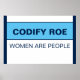 Codify Roe Women are People. Codifying Roe should be the floor of women's healthcare rights, not the ceiling. And now even that doesn't exist. Tell Congress it's time that they do the very least they can do for women's health, safety, and equality, because women are people. Design description: The design space is a white background with a dark blue border. In the top half of the design space, the words, "Codify Roe" in a dark blue sans serif font. Underneath that, a wide light blue stripe with matching dark blue top and bottom borders. Below the stripe, in the bottom half of the design, the words, "Women are people."