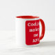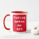 The perfect gift for all you programmers out there who love a good API! This mug has the text "Coding makes me API" set on a red background.