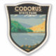 Codorus State Park artwork in a badge style design. The park was created around Lake Marburg, an artificial lake, and is named for Codorus Creek, which forms the lake.