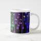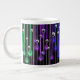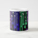 This coffee mug has an image of an abstract pencil drawing on it which went through adjustments on Photoshop to make it what it is. As an artist I have spent lots of time working with bright colours and the more I have done that the more I have decided that green, blue, and purple are my favourite colours to use together. And having the design over a pitch black background makes it stand out more.