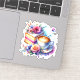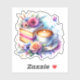 A pretty ai watercolor style piece of birthday cake with pink and purple flowers and roses next to a cup of coffee or expresso pretty floral birthday sticker.