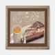 Who doesn’t love chocolate in any form? Here we have a steaming cup of coffee with a yummy slice of marbled chocolate cheesecake. Set in a dark brown frame on a background of cocoa steam with a scroll embellishment. Stylised digital design for you to savour.