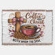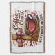 This Throw Blanket features a decorative design combining Christian faith and a love for coffee. A wooden cross, adorned with a pink bow, stands next to a steaming red coffee cup on a saucer, surrounded by scattered coffee beans and stylised leaves and swirls. The text "Coffee AND Christ" arches above the coffee cup in an elegant brown script, while the phrase "BOTH WARM THE SOUL" is displayed at the bottom in a similar brown script. Small hearts and decorative elements are interspersed throughout the design. This shirt expresses the wearer's appreciation for both spiritual comfort and the warmth of coffee.