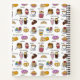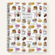 Sweet pattern of cakes, desserts and coffee. All the favourite types of comfort food illustrated on a personalised recipe notebook.