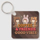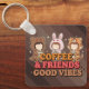 A cute and colorful illustration of three friends wearing animal (bear, bunny, and tiger) enjoying their favorite coffee.