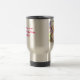 Travel Coffee Mug with original watercolor of two hearts on one side and the quote "Coffee and Love are best when they are hot!" on the opposite side