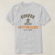 The stylised brown and orange text on this shirt says "COFFEE and ROTTWEILERS are all I need". A coffee cup and paw prints complete the design. The orange text may be changed to any breed you prefer.