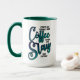 First we drink the coffee then we slay the things inspirational coffee quote in turquoise and black