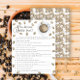 Watercolor coffee beans and cup of coffee and beans pattern. Coffee brewing baby shower. Coffee themed baby shower with. Text with coffee ring and with coffee beans and cup of coffee.