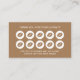 Coffee bean shop loyalty business card template. Custom company reward card design for cafe, restaurant, diner and other places. Customisable beige and brown colours. Space for 10 stamps. Offer return clients and customers a discount or free order like a cup of coffee or other drinks. Two sided print with roasted coffee bean logo.