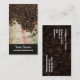 Roasted coffee beans spilling from a canvas sack. Name and email address on the front side of the card and company information on the reverse.