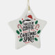 A festive star-shaped ornament for coffee lovers. Holiday typography with Santa hat, holly, and candy canes. A charming stocking stuffer or tree decoration. Designed by Le Petit Dodo.