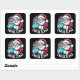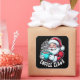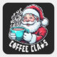 This sticker features a cheerful Santa Claus holding a steaming blue/teal coffee mug. The text "COFFEE CLAUS" is written in large white font underneath the figure. Santa is smiling and wearing his traditional red suit and hat, set against a solid black background. The design may look real due to the high detail and three-dimensional texture in the artwork.