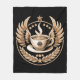 Coffee Commander military insignia, with a steaming coffee cup with ornate wings and stars surrounding it.