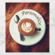 An elegant phone grip featuring a cup of coffee / cappuccino or latte in a cup and saucer. Pretty cream art swirled into the coffee. In colours of brown and white.