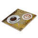 If you're crazy about cappuccino's and filter coffee this design featuring a white ceramic coffee cup and saucer filled with filter coffee and another filled with coffee and cream on which a pretty heart appears is ideal. The cups ar set against a vintage brown floral pattern on which faux gold flowers, sprigs and abstract gold splashes appear. Ideal for coffee houses, chicory bean retailers or your kitchen splash back.