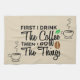 Kitchen Towel with Coffee Cups, Reads: First I drink The Coffee, Then I do the stuff.
