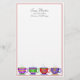 Send a personal letter with this delightful Coffee Cup stationery featuring each of the cup designs from the Coffee Cup Collection. Personalise the stationery with your name and address or with any text that you choose. The vivid colours and whimsical designs will send a message of friendship, warmth and sharing. Don’t forget to order the matching postage stamps.