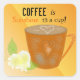 A big cup of coffee with some flowers beside it. A sunny background and a saying 'coffee is Sunshine in a cup!'