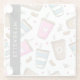 Coffee Cups, Coffee Beans, Hearts, Your Name Glass Coaster