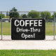 This bright banner will let customers see your coffee shop or booth drive-through is open and ready for business! It features clear, easy-to-read lettering to catch attention. Feel free to customize this signage with your own words, if you like!