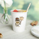 a hilarious cartoon coffee cup with sleepy eyes reminding everyone that coffee comes first