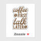 Add personality to your space with these high-quality custom-cut Coffee First, Talk Later stickers, perfect for decorating desks, laptops, journals, and more.