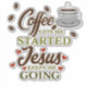 It has text that says, "Coffee gets me started Jesus keeps me going"