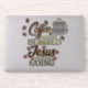 The text is a mixture two fonts. The words Coffee and Jesus are in script, while the other words are serif block letters. The words coffee and Jesus are in coffee brown. The other text is a medium sage green.