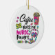 Colourful retro style nurse ceramic ornament featuring a cup of coffee along with medical supplies and text that reads Coffee Gives Me Nurse Powers, great for the nurse who loves her coffee!