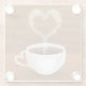 A Cup of coffee illustration featuring a white mug of hot coffee with heart shaped smoke on a brown background with typography on the wall.